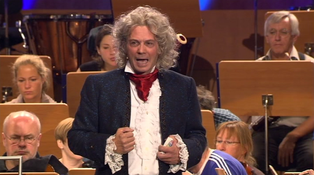 The german countertenor and anchorman Roland Kunz presents the fifth symphony by Ludwig van Beethoven. In cooperation with the orchestra and it`s conductor Karel Mark Chichon he explains and demonstrates very enjoyable the character and architecture of this famous composition.